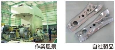 一日何万個という数の車の部品を大型プレスにて製造しています。鉄板が部品形状へ変化していく様が見ていても楽しいです。